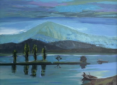 Hồ Đồng Mô hiện lên như một bức tranh thủy mặc giữa lòng thiên nhiên, nơi mặt nước phẳng lặng phản chiếu bầu trời xanh và những dãy núi trập trùng phía xa. Ánh sáng ban mai nhuộm vàng mặt hồ, tạo nên những vệt sáng lung linh như dát bạc. Những hàng cây ven hồ uốn lượn mềm mại, gợi cảm giác thanh bình và thơ mộng. Dưới góc nhìn nghệ thuật, Đồng Mô không chỉ là một thắng cảnh mà còn là biểu tượng của sự giao hòa giữa con người và thiên nhiên, nơi cảm xúc được khơi gợi qua từng làn gió, từng gợn sóng, và từng khoảnh khắc lặng yên.