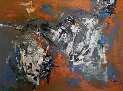Tác phẩm “Trừu tượng” là một biểu hiện mạnh mẽ của cảm xúc và nội tâm, sử dụng các mảng màu đen như những dòng chảy cảm xúc giằng xé, chuyển động không ngừng. Khi thì lặng lẽ, khi thì bùng nổ, các khối màu tạo nên nhịp điệu thị giác đầy kịch tính, phản ánh sự phức tạp và đa chiều của cuộc sống hiện đại. Bố cục không tuân theo quy tắc cố định, cho phép người xem tự do cảm nhận và liên tưởng. Đây là một tác phẩm mang tính biểu cảm cao, khơi gợi suy tư về sự tồn tại, mâu thuẫn và chuyển biến trong đời sống con người.